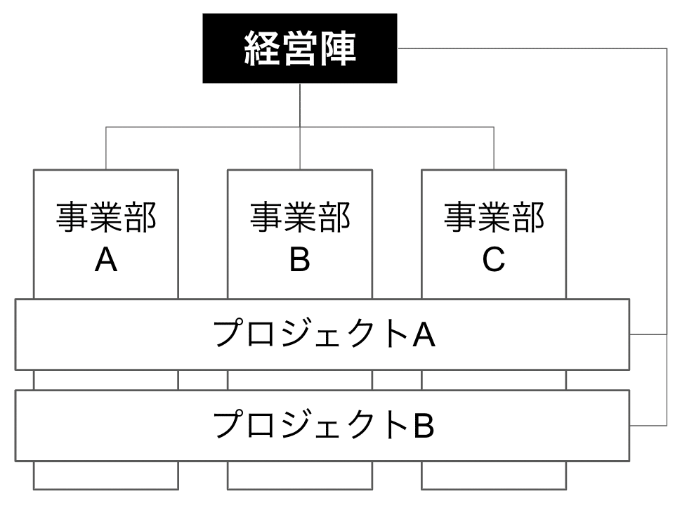 • マトリックス組織は、機能別組織事業部制を組み合わせた形態です。